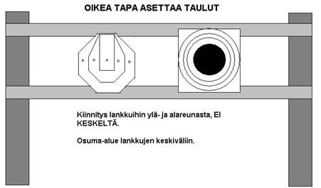 ○ Taulut on kiinnitettävä radalla oleviin telineisiin.