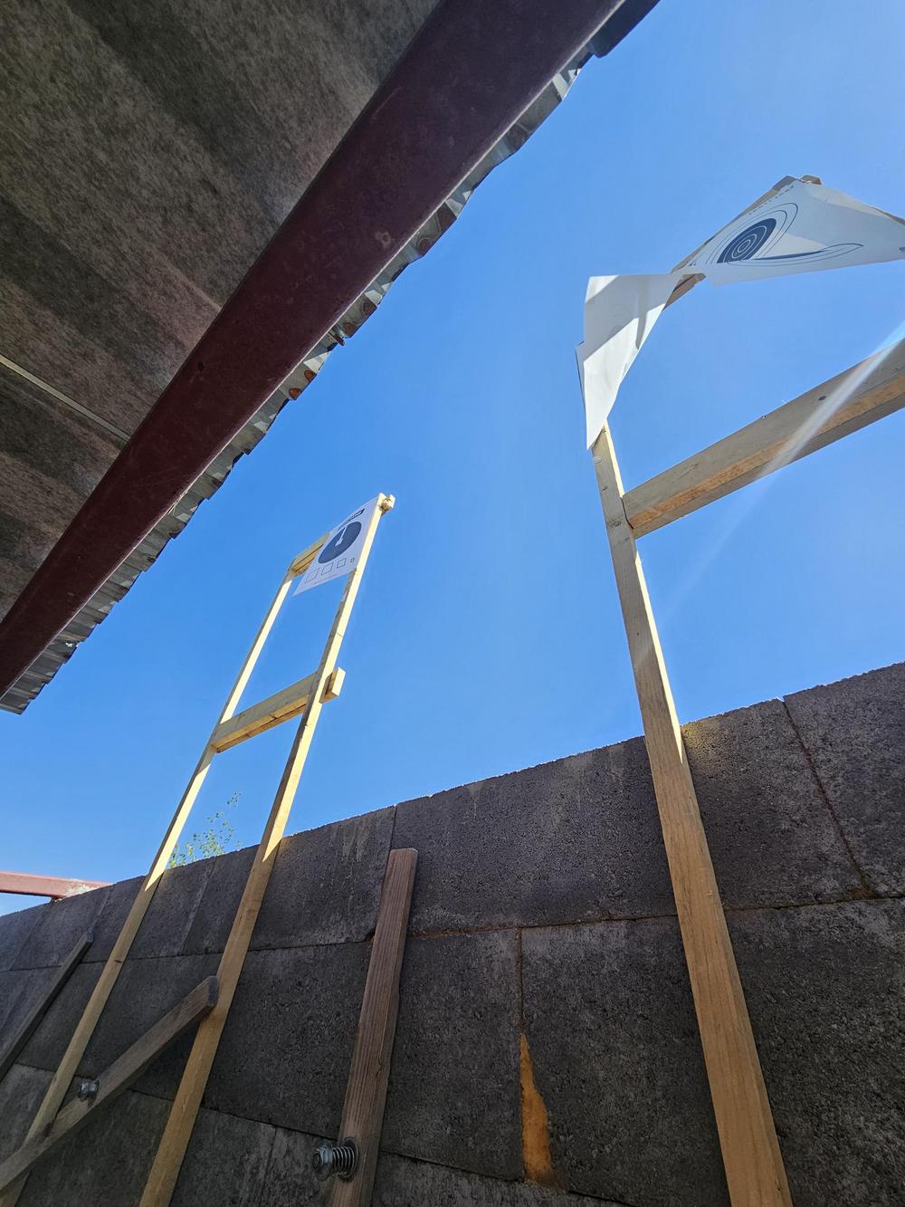 Käytetyt taulut pitää tuoda ampumakatoksen roskasäiliöihin.