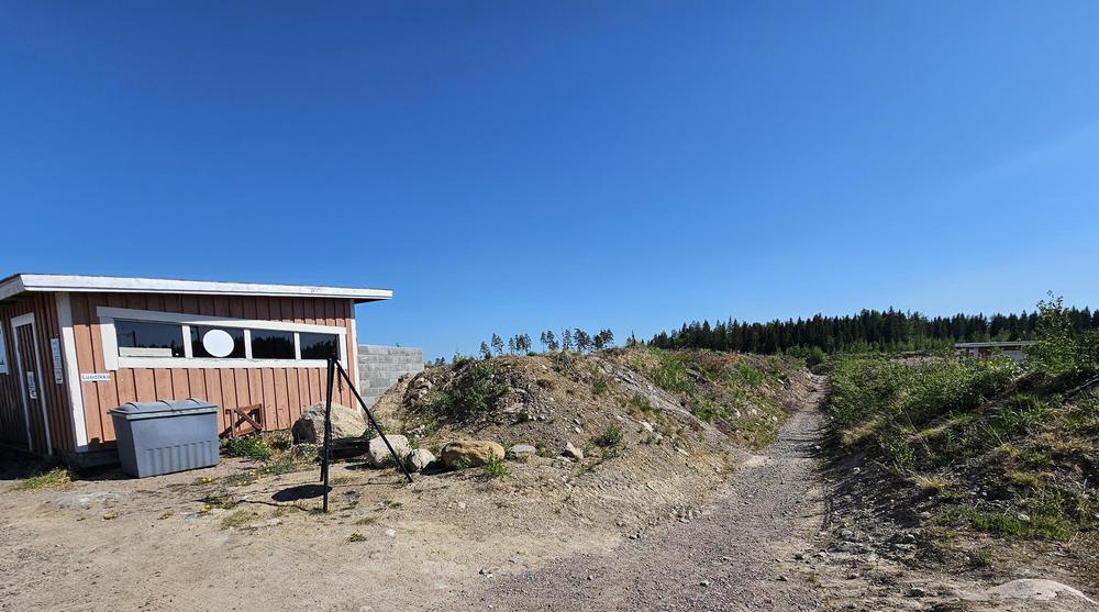 Kulku näyttösuojaan Hirviradan vasemmassa reunassa vallilla erotettua kulkuväylää.